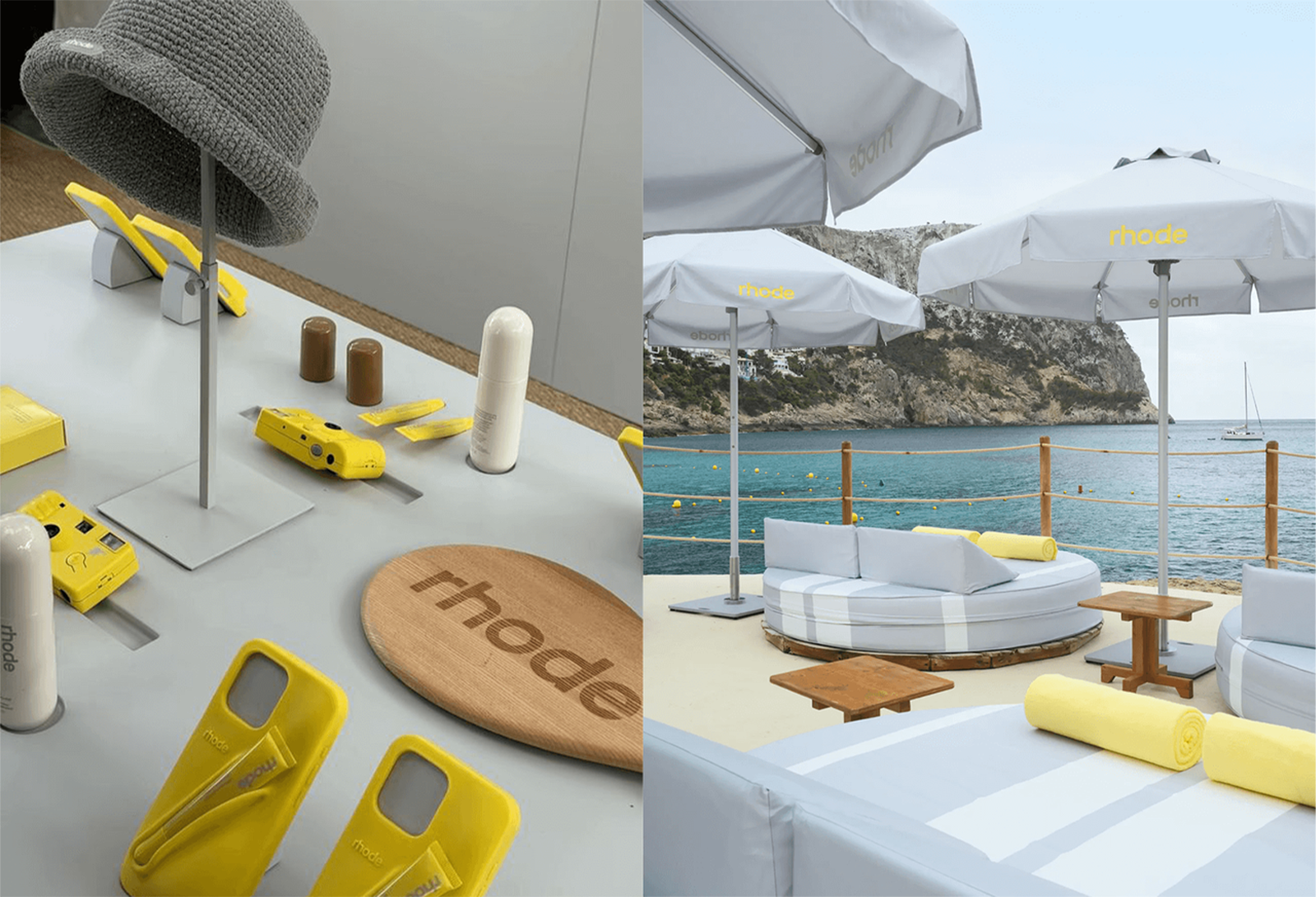 rhode: After launching the Lemontini Summer Collection, Hailey Bieber took rhode on a European vacation, setting up shop at Gran Folies Beach Club, Majorca, Spain. Named the rhode Summer Club, the space featured branded towels, sun loungers, and beach umbrellas decorated in Lemontini yellow, as well as inflatable pool floats that resembled popular products such as the Pocket Blush and Peptide LipTint iPhone Case. The beach club, which the brand said has been “years in the making,” supported Associació Tardor, a shelter in Majorca that works to battle poverty and social exclusion within the region. The rhode Futures Foundation made donations to the charity after the event, to support its kitchen improvements, lockers for residents, and a monthly food budget.