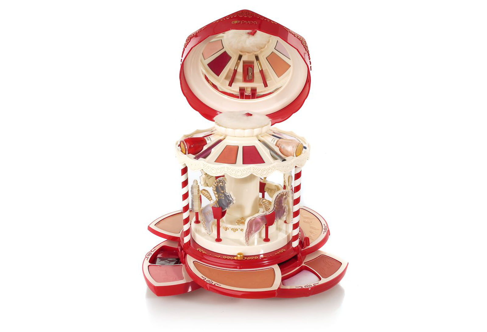Pupa Milano palettes came in what Comoglio called “fantasy shapes,” with the most famous being an actual working carousel, launched in 1993. The brand’s makeup cases were coveted by Italian and other European girls and young women, frequently selling out soon after launch during the holiday season.
