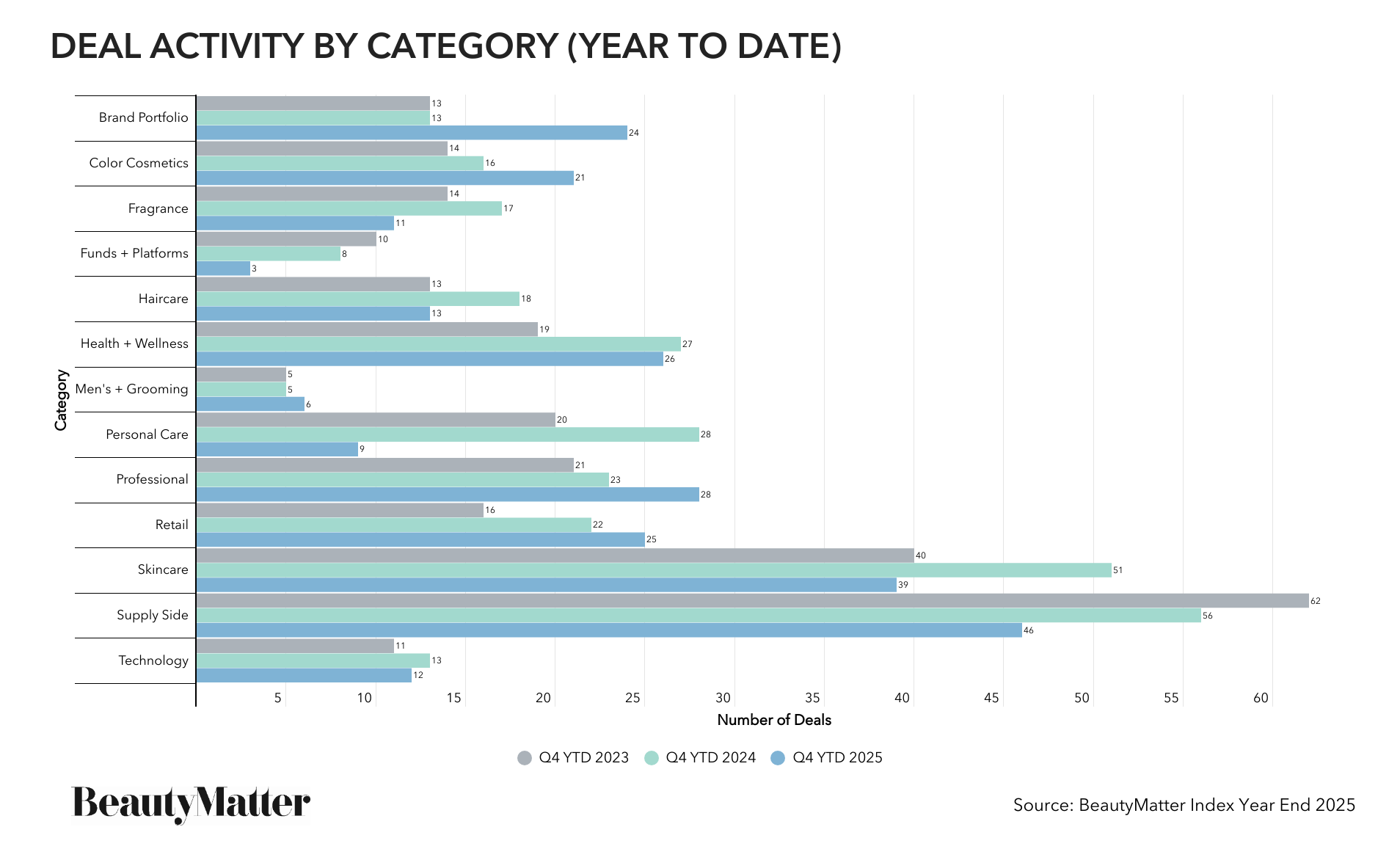 • BeautyMatter Index state of deal flow for 2025 and forecast for 2026