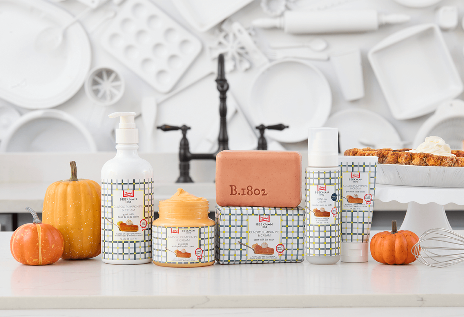 Beekman 1802 x Libby’s: The skin health brand has partnered with pumpkin brand Libby’s to launch a limited-edition bodycare collection inspired by its fall products. Featuring Libby’s pumpkin, toasted sugar, and warm spice aromas, the collection includes Milk Shake Body ($49), a vanilla cream moisture body mist, Hand & Body Wash ($22), Bar Soap ($16), Whipped Body Cream ($38), and Hand Cream ($16), each in Libby’s classic pumpkin pie & cream scent.
