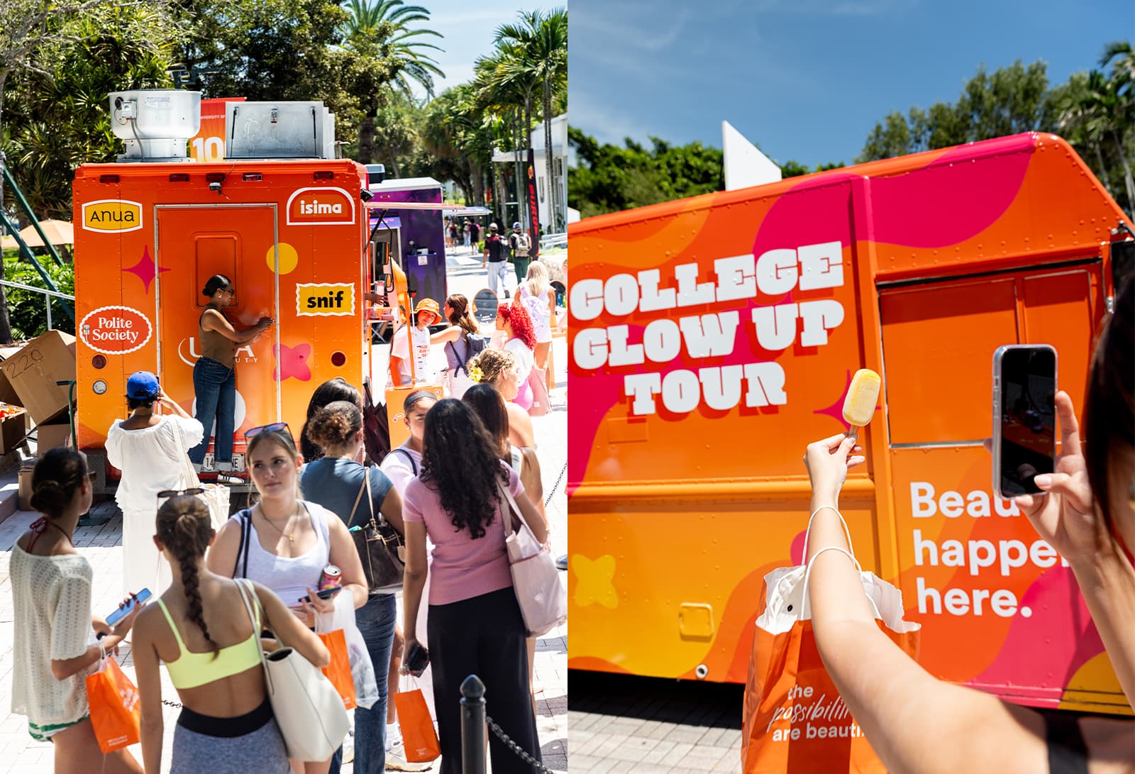 With a custom orange-pink Ulta Beauty truck handing out free products and branded merchandise, the pop-ups also feature free snacks and treats, interactive photo moments, surprise influencer meets, and other giveaways. Attendees have the opportunity to sign up for the Ulta Beauty Rewards Program and unlock exclusive benefits with the new Student Perks, which include 10% off purchases, BOGOs, and other limited-time promotions. Ulta Beauty is even offering entry into a sweepstakes for two tickets to Ulta Beauty World in 2026, a one-day immersive beauty event taking place in Orlando next year.